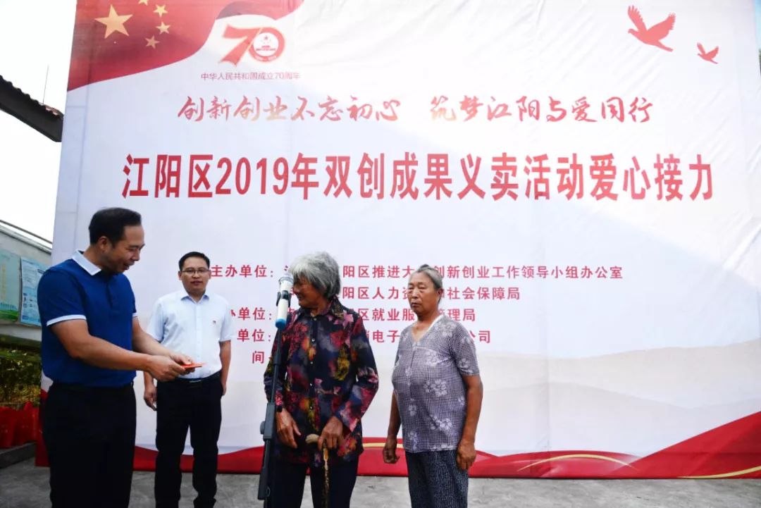 9月28日由瀘州市江陽區雙創辦、江陽區人社局主辦,江陽區就業局承辦,瀘州江陽供銷電子商務有限公司協辦的“創新創業不忘初心 筑夢江陽與愛同行”江陽區2019年雙創成果義賣活動愛心接力活動在江陽區彌陀鎮聯合村成功舉行,本次活動也為9月21日的“禮贊祖國 筑夢江陽”江陽區2019年雙創成果義賣活動畫上了圓滿的句號。
