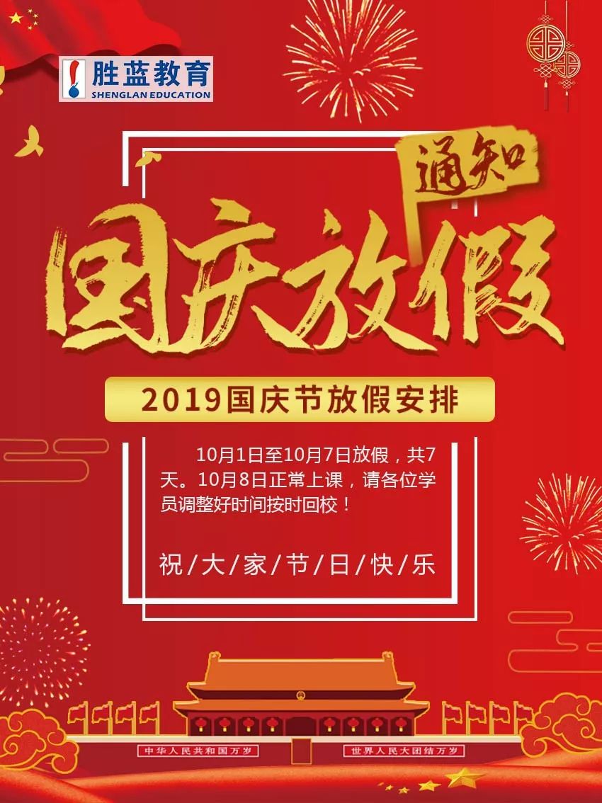 瀘州市勝藍職業學校 2019年國慶節放假通知