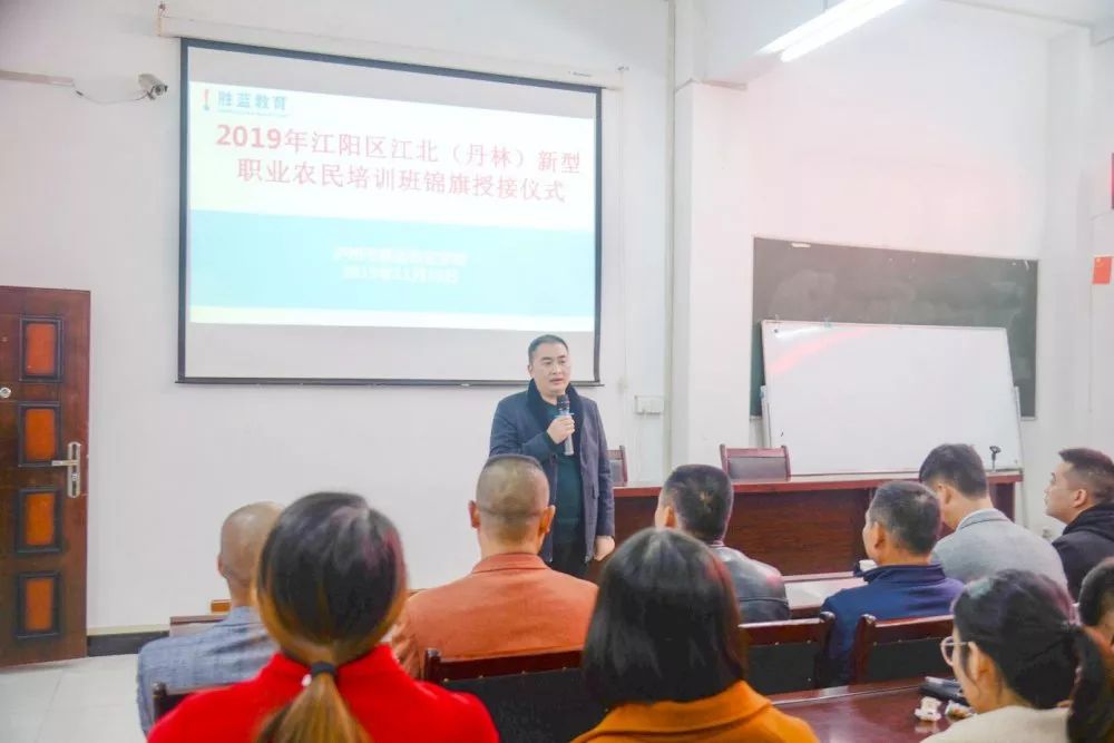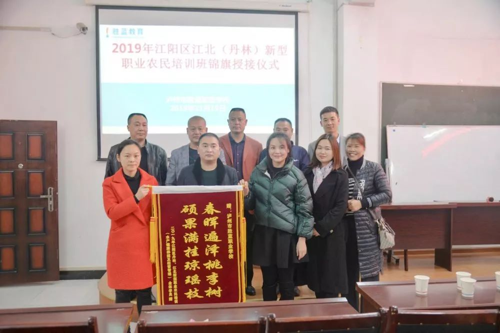11月19日下午,江陽區江北(丹林)鎮新型職業農民水產健康養殖及經營管理班的劉玲、高小華等7名學員代表,專程趕到瀘州市勝藍職業學校,為表達感激之情,自發地為學校贈送了錦旗。