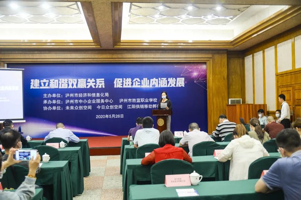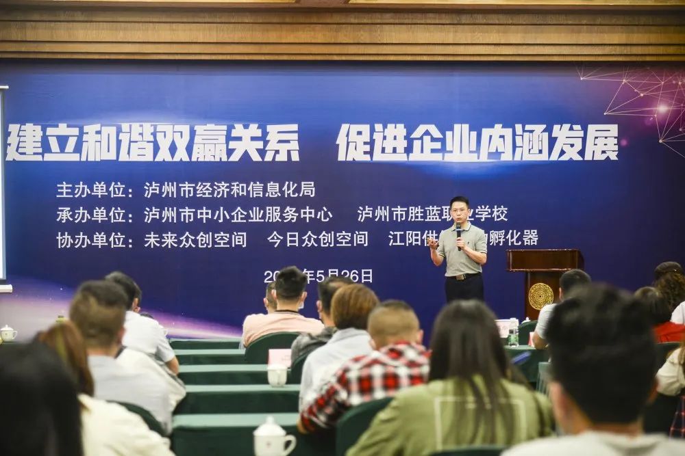 5月26日由瀘州市經濟和信息化局主辦,瀘州市中小企業服務中心聯合瀘州市勝藍職業學校承辦,我校關聯企業未來眾創空間、今日眾創空間、江陽供銷移動孵化器協辦的“建立和諧雙贏關系,促進企業內涵發展”培訓會在南苑賓館會議中心順利開課。瀘州市經濟和信息化局企業管理科科長蔣中賢科出席了本次會議。