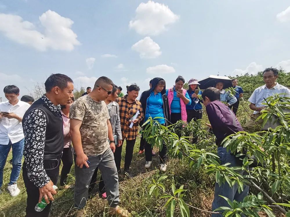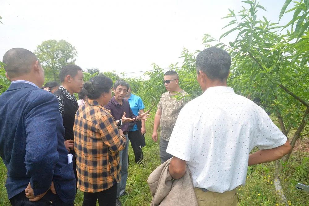 隨后,大家前往魏北村參觀高素質農民培訓學員徐波的農場基地,基地占地200畝,其中50畝冬桃、150畝黃桃。龔老師在現場帶領同學們,對基地的果樹進行了現場實地講解和指導,同時耐心的為同學們逐個解答種植中的疑難雜癥,同學們都非常用心的學習。