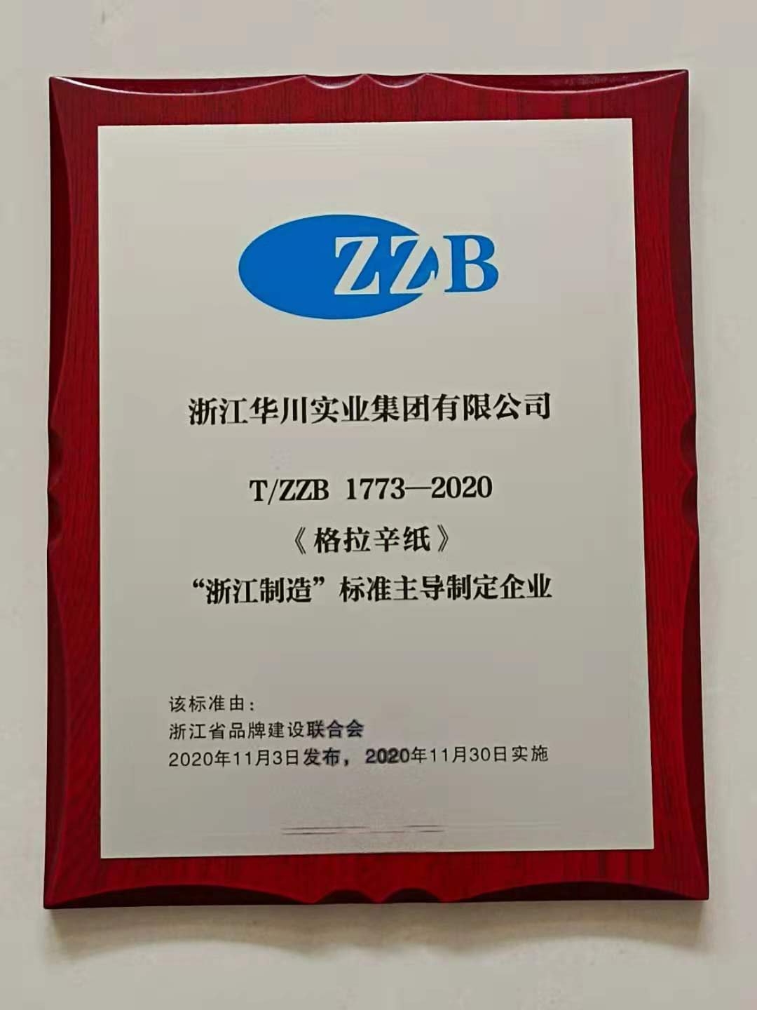 5月10日是“中國品牌日”,從當(dāng)日舉行的義烏市“呂牌建設(shè)工作推進(jìn)會暨中國品牌日主題活動獲悉,義烏已民牽頭制定“浙江制造”標(biāo)準(zhǔn)40項,有29家企業(yè)的44個產(chǎn)品獲得"品字標(biāo)"認(rèn)證,我公司生產(chǎn)的格拉辛紙所制定的格拉辛紙標(biāo)準(zhǔn)T/ZBB 1773-2020是“浙江制造”,標(biāo)準(zhǔn)主導(dǎo)制定企業(yè),本標(biāo)準(zhǔn)于2020年11月3日由浙江省品牌建設(shè)聯(lián)合會發(fā)布,于2020年11月30日實施。